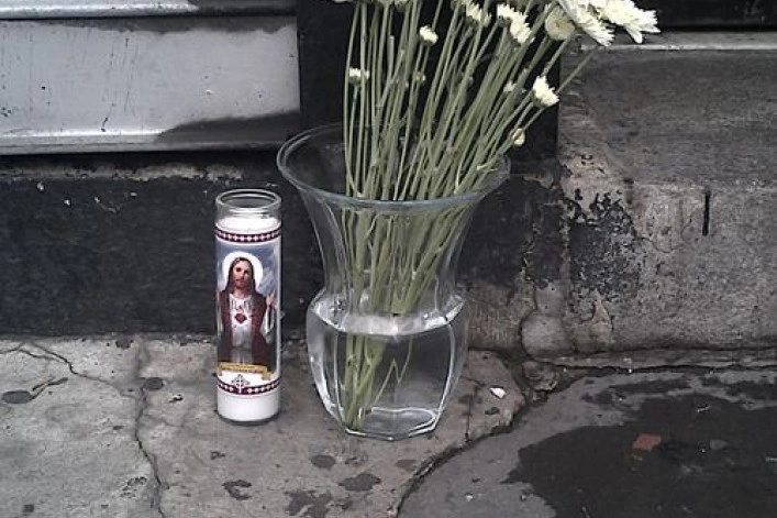 (Later a candle would be kept burning on the floor inside the building as a sort of memorial to him, and while I certainly didn’t want to be disrespectful, leaving a burning candle unattended next to piles of garbage that had collected because there was not yet a new super to toss them seemed foolhardy, so I kept blowing it out.)