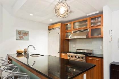 Williamsburg one-bedroom, one-bathroom condo, $512,000: Located in a luxury elevator building at 415 Leonard Street between Bayard and Richardson Streets, this apartment features a chef’s kitchen with quartz countertops and stainless steel appliances, a modern slate bathroom with a deep soaking tub and a large utility room with a washer/dryer hook-up. Amenities in the luxury elevator building include a doorman and concierge, central heat and air conditioning, a common outdoor deck, a children’s playroom and a private garage for residents. The apartment is close to both the G and L trains.