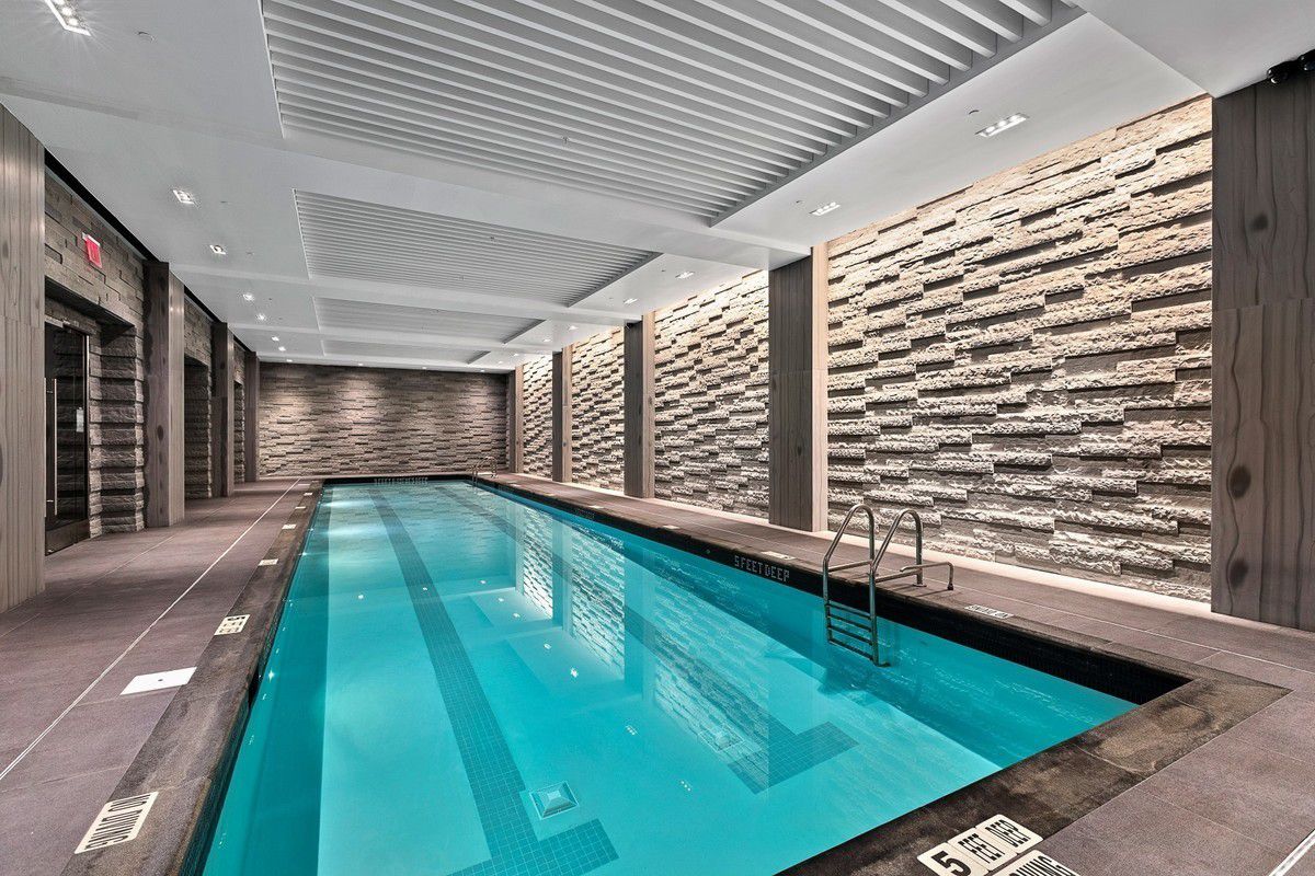 There’s a lounge with billiards, a gym, 67-foot saltwater lap pool, Jacuzzi, steam room, and yoga room, plus a pet spa.