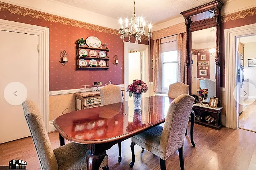 This townhouse (also shown at top) has many historic details, like original fireplaces and built-ins. It also has some updates, including a new kitchen. Previous owners built a wine cellar as well as what the listing calls a “back house,” which is being used as a separate one bedroom with its own entrance to the street. It is listed for $2,495,000