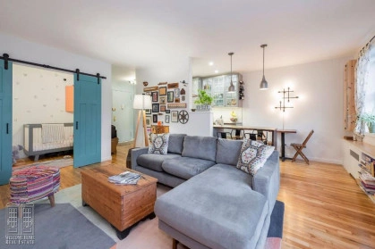 This renovated Sunnyside one bedroom has a bonus room with barn doors, for $429,000