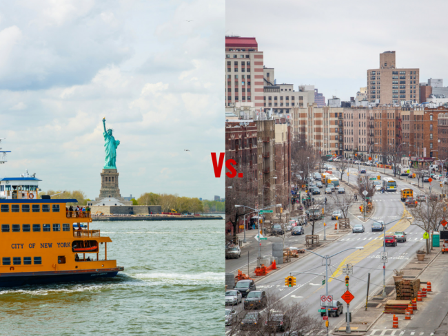 Let's get to the downsides: Unless your home or office is within walking distance from the ferry docks, you'll be preparing for a three-stage commute—the trip to the ferry on Staten Island, the ferry ride itself, and then your comute from there to the office.