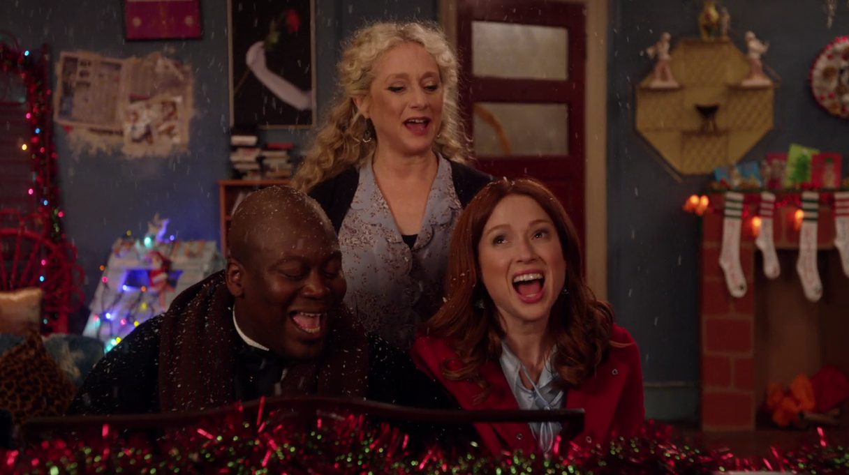 References are made throughout the season to a serious asbestos issue in the apartment, which sounds extreme enough that it'd be highly dangerous in real life. (As would Titus' decision to go ahead and use that bedbug piano he finds on the street, as shown in the main photo above.) But in the context of the show, it's just funny. To wit: When Kimmy stages a fake Christmas, Lillian hits the ceiling with a broom to create fake asbestos "snow." Festive!